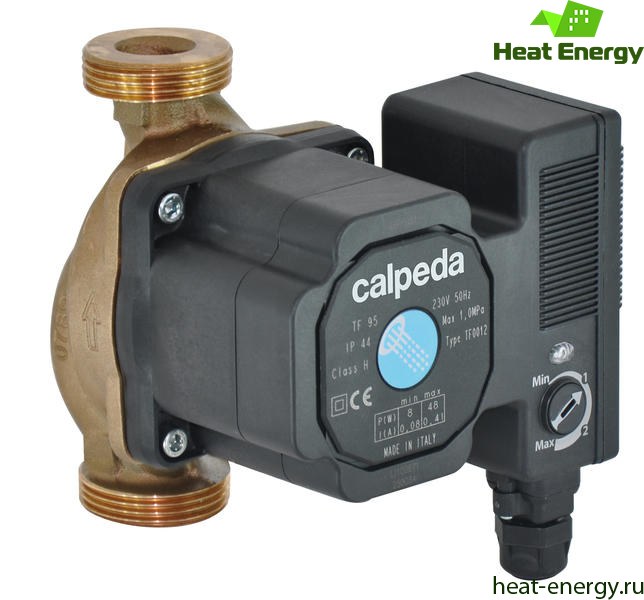 Для обработки горячей санитарной воды. Корпус насоса из бронзы.