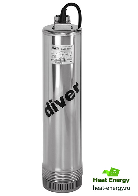 Насос DAB DIVER 100 HF M-NA арт. 60121667. Многоступенчатые моноблочные погружные насосы с гидравлической частью под электродвигателем. Электродвигатель охлаждается перекачиваемой жидкостью. Используются для подъема чистой воды из скважин, колодцев, ёмкостей или цистерн для сбора чистой воды, а также могут распределять воду под давлением к бытовым и небольшим сельскохозяйственным установкам. Макс. расход: до 4,8 м?/ч. Макс. напор: до 101 м (в зависимости от модели). Диапазон мощности: от 0,55 кВт до 1,5 кВт для однофазных и трехфазных моделей. Диаметр насоса: 127 мм.