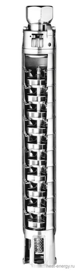 Насос Ebara 4BHS/A 2-13 50-60HZ арт. 3501031013A — это центробежный скважинный насосы диаметром 4 дюйма, полностью из нержавеющей стали AISI 304. Могут быть использованы с двигателями диаметром 4 дюйма по стандарту NEMA. НАЗНАЧЕНИЕ: Бытовые, сельскохозяйственные и промышленные системы водоснабжения. Подача воды под давлением, противопожарные системы. Орошение. Мойка. Перекачка чистой воды (в общих целях). ОСОБЕННОСТИ КОНСТРУКЦИИ: Надежность и прочность. Устойчивость к коррозии. Исключительно высокий КПД благодаря гладким поверхностям рабочих колес и диффузоров. ТЕХНИЧЕСКИЕ ХАРАКТЕРИСТИКИ НАСОСА: Макс. глубина погружения 350 м (двигатель, заполненный водой), 150 м (двигатель, заполненный маслом). Макс. температура жидкости 30°C. Макс. содержание песка 50 промилле. Макс. содержание хлора 500 промилле. Резьба на выходе G1 (4BHS 2), G1 (4BHS 4), G2 (4BHS 7-4BHS 15). Варианты комплектации: насос 4BHS с двигателем OY, заполненным маслом; насос 4BHS с двигателем WY, заполненным маслом. Мин. показатель эффективности (MEI) > 0,4 (4BHS 2 — 4BHS 4 — 4BHS 7). Насос и двигатель поставляются отдельно. ТЕХНИЧЕСКИЕ ХАРАКТЕРИСТИКИ ДВИГАТЕЛЯ: 2-полюсный двигатель, заполненный маслом (OY) или водой (WY). Макс. число запусков в час 30 (OY) — 20 (WY). Быстроразъемное соединение для силового кабеля. Класс изоляции F (OY) — B (WY). Класс защиты IP58 (OY) — IP68 (WY). 1 фаза, 230 В (±10%), 50 Гц (OYM). 3 фазы, 380 — 415 В (±10%), 50 Гц (OY). 1 фаза, 230 В (-10%+6%), 50 Гц (WYM). 3 фазы, 380 — 415 В (-10%+6%), 50 Гц (WY). МАТЕРИАЛЫ: Выходной патрубок и опора двигателя — литье из нержавеющей стали. Кронштейн, каналы, муфта, рабочее колесо, диффузор, клапан, ступени, стяжные шпильки и ограждение кабеля — сталь EN 1.4301 (AISI 304). Кольцо компенсации износа — сталь EN 1.4301 (AISI 304) + каучук EPDM. Вал — сталь EN 1.4401 (AISI 316). Радиальные и упорные подшипники, антифрикционная шайба — карбид вольфрама.