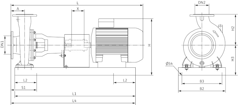 Минимальный индекс эффективности (MEI) — Номинальная мощность мотора (P2 / кВт)- 75; Число полюсов- 4; Номинальный диаметр (DN1 / )- 300; Номинальный диаметр (DN2 / )- 250; Размеры (L / мм)- 2397,0; Вес, прим. (m / кг)- 1797