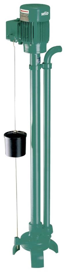 Вертикальный насос для грязной воды в стоечном исполнении для перекачивания горячей загрязненной воды (до 95 °C), конденсата и незагрязненных жидкостей с твердыми материалами из насосных шахт котлов/систем отопления и подвалов, подвергающихся опасности затопления. Гидравлический корпус из серого чугуна, корпус мотора из алюминия, рабочее колесо из стали или серого чугуна. Напорный патрубок с горизонтальным патрубком напорного слива и внутренней резьбой. Непогружной, не боящийся затопления стандартный мотор IE2 в исполнении для однофазного или трехфазного тока. Защита мотора и соединительный кабель устанавливаются заказчиком. Гидравлика и мотор неподвижно соединены защитной трубой вала. Установка насосного вала выполняется с помощью подшипников скольжения, смазываемых перекачиваемой средой. Встроенный поплавковый выключатель обеспечивает автоматическую работу насоса с контролем уровня.