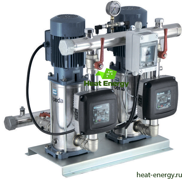 Конструкция: Автоматические насосные станции постоянного давления, состоящие из 1-6 насосов с переменной скоростью с частот, преобразователем в двигателе, установленных на общей раме (с входным и выходным коллекторами), запорных и обратных клапанов, датчика давления, манометра, пульта управления и мембранного ресивера емкостью 20 л. (под заказ)