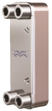 Теплообменник Alfa Laval CBH16 — паяный пластинчатый теплообменник. Отличается эффективностью теплопередачи и занимает мало места. Примененяется для нагрева и охлаждения в системе ОВКВ, охлаждении масла, нагреве и охлаждении в промышленности. Компактное исполнение. Простота монтажа. Возможность самоочистки. Все изделия испытываются давлением на прочность и плотность. Без использования прокладки. Материал припоя герметизирует и удерживает пластины вместе на точках соприкосновения. Это обеспечивает оптимальную эффективность теплопередачи и сопротивление давлению. Имеются различные классы давления для различных потребностей. Каждый теплообменник, создаваемый на базе стандартных компонентов и модульной концепции, имеющий симметричные и асимметричные каналы, изготавливается по заказу для удовлетворения конкретных потребностей каждой отдельной установки. Предназначен для работы в условиях полного вакуума. Накладки из нержавеющей сталь, соединения из нержавеющей стали, пластины из нержавеющей стали, твердый припой медь. Размер (мм) 7 + (2.16 * n), масса (кг) 0,14 + (0.04 * n), где n — количество пластин. Мин. кол-во пластин 4. Макс. кол-во пластин 60. Размер 209,5х73,5 мм.