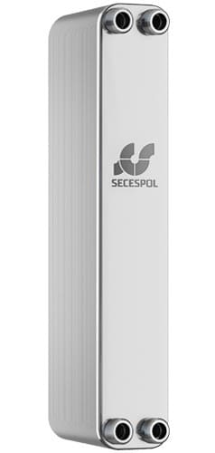Теплообменник Secespol для гвс и отопления Secespol LA34LN-20-2S-3/4″ арт. 0420-0338 — это пластинчатый паяный теплообменник, полностью изготовленный из нержавеющей стали. В результате применения нержавеющего припоя, теплообменник получил материально однородную конструкцию с более высоким уровнем гигиены, а также устойчивость к корризии, перепадам давления и изменениям температуры. Это проточное, противоточное устройство. Поверхность теплообмена создают гофрированные пластины из нержавеющей стали объединенные в пакет при помощи нержавеющего припоя. Они составляют неразборную конструкцию. Соответствующее образование внутреннего пространства теплообменника направляет поток теплообменивающих жидкостей в каналы создаваемые каждой второй греющей пластиной. В передней и задней пластине расположены патрубки подводящие и отводящие рабочие жидкости. Благодаря своему уникальному строению, теплообменники LUNA имеют широкий диапазон применений, а также более длительную долговечность. Для каждого размера теплообменника можно выбрать различные размеры присоединений, а также двухходовую версию теплообменника, которая характеризуется высокой эффективностью теплообмена при более требовательных параметрах. — в охладительных установках с повышенными гигиеническими требованиями, в отопительных и охладительных установках с повышенными санитарными требованиями. Они являются также отличным решением в случае агрессивных агентов, например, агрессивная водопроводная вода, аммиак, а также в системах с оцинкованными трубами. 2-проходный, с 6 соединениями.