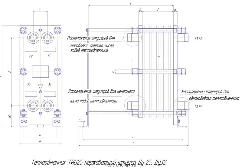 Теплообменник Термоблок ТИ025 Ду32 — это пластинчатый разборный теплообменник Теплохит. Передача тепла происходит через тонкостенные гофрированные пластины, уплотненные специальными резиновыми прокладками. Поток жидкости или газа, проходя через пластины, испытывает многочисленные изменения направления и скорости, что обеспечивает турбулентное движение и высокую эффективность теплообмена. Имеет широкую гамму подключения подтрубков: Ду20, Ду25, Ду32, Ду40. Конструкция пластины позволяет формировать 12 разновидностей каналов для прохода различных жидкостей, что позволяет изменять гидравлическое сопротивление и теплопередачу, при этом сопротивление греющей и нагревающей жидкости может быть разное. Особая конструкция клипа надежно закрепляет уплотнение на пластину, тем самым исключает обрыв при монтаже пластины. Области применения пластинчатых теплообменников серии ТИ: нагрев теплоносителя в системах отопления, горячего водоснабжения, вентиляции и других технологических теплообменных процессах; охлаждение трансформаторного, гидравлического и моторного масел; теплоснабжение домов коттеджного типа; горячее водоснабжение душевых сеток на производстве; в системах напольного отопления; теплоснабжение высотных домов; теплоснабжение небольших районов; в системах приточной вентиляции; нагрев воды в плавательных бассейнах; нагрев или охлаждение жидкостей в пищевой промышленности; и других технологических теплообменных процессах.